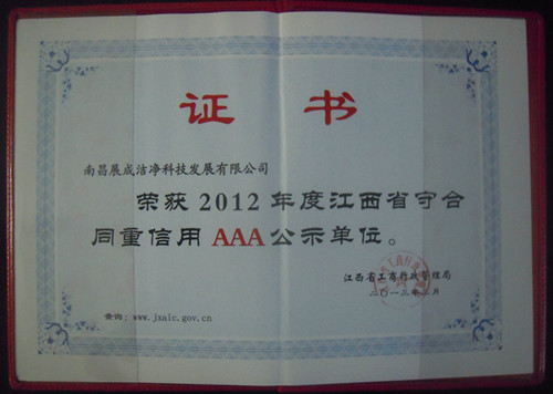 • 2012年度江西省守合同重信用AAA公示单位